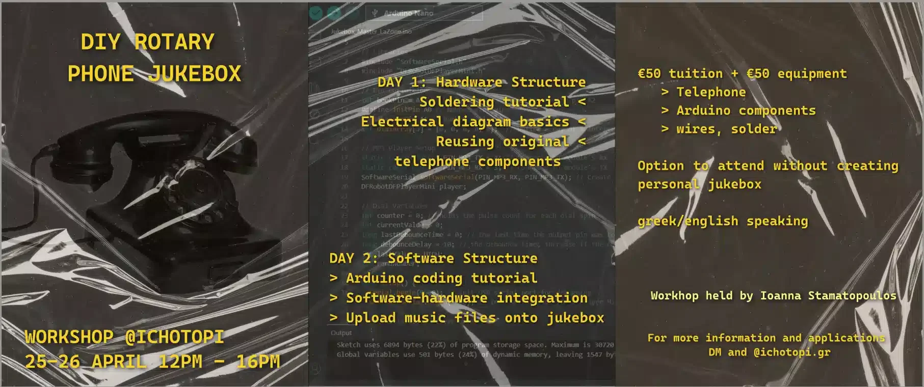 Σε αυτό το μουσικό και κατασκευαστικό εργαστήρι θα δημιουργήσουμε το προσωπικό μας jukebox από παλιές συσκευές τηλεφώνου. Δε χρειάζεται προηγούμενη γνώση/εμπειρία.
